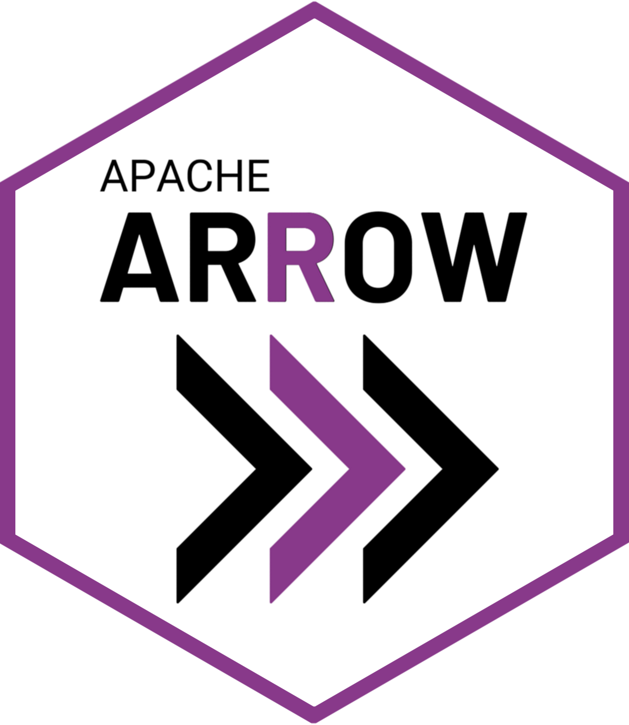 At the bottom of this page you can find the complete list of all logo-related files provided by the Apache Arrow project. The logo exists in a light theme and a dark theme, and these versions are usually simple inversions of one another. The light theme uses black text against a white (or other light colored) background: